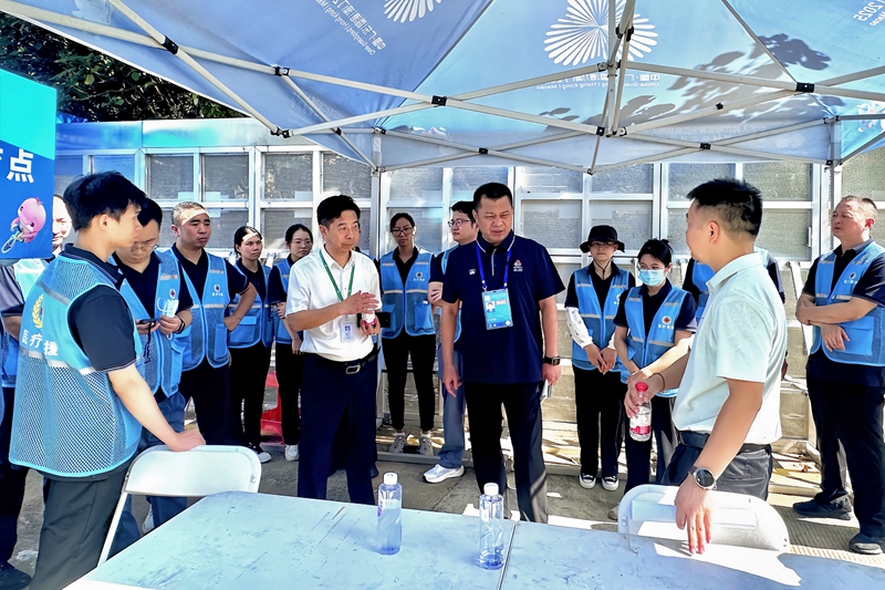 医疗保障队伍聚焦运动员突发伤病、观众意外中暑、酒店食物中毒和蛇虫伤等风险,制定“多层次、多场景、全覆盖”的应急方案。