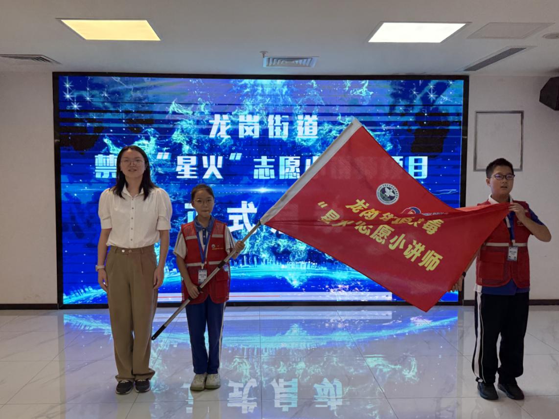 启动仪式上,龙岗街道平安法治办负责人详细介绍了项目的背景与意义。当前,新型毒品不断伪装渗透,青少年因好奇心强、辨识能力弱,已成为毒品侵害的高风险群体。为此,龙岗街道创新推出“星火”志愿小讲师培育计划,聚焦青少年在朋辈传播、家庭教育和社区影响中的独特优势,探索“青少年讲给青少年听”的新型宣传模式,让禁毒知识更贴近、更生动、更有效。