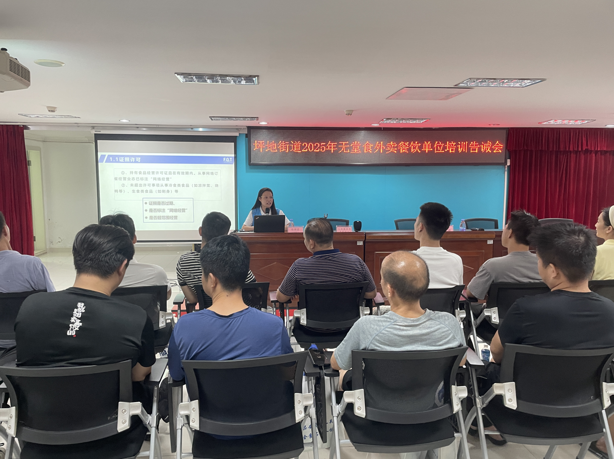 深圳新闻网2025年8月29日讯(记者 张凡 通讯员 李玉影 刘红胜)“食安封签一定要贴牢,这是餐品送到居民手上的‘最后一道安全锁’!”8月28日下午,深圳市龙岗区坪地街道2025年无堂食外卖餐饮单位培训告诫会现场,坪地市监所工作人员拿着 “食安封签”样本,向参会的餐饮单位负责人强调。这场聚焦外卖安全的会议,旨在拧紧无堂食外卖的“安全螺丝”,守护居民 “舌尖上的安心”。街道二级调研员彭伟增、街道食药安办、坪地市监所以及辖区无堂食外卖餐饮单位负责人参加会议。
