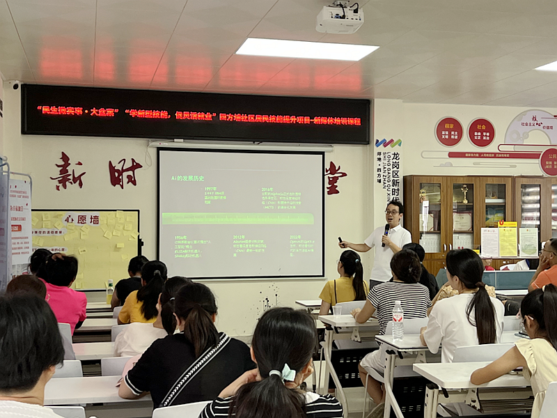 “不能让群众的需求悬在半空。”四方埔社区党委迅速行动,发挥基层治理统筹作用,联合专业培训机构,围绕“实用、易学、能落地”的目标,量身定制培训方案,将课堂设在党群服务中心,让居民“走出家门就能上课”,真正实现“家门口学本事”。