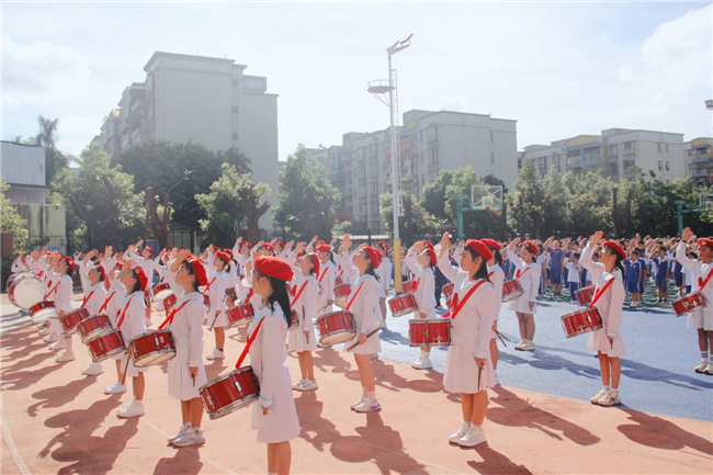当日8点30分,开学典礼在庄严的升旗仪式中拉开帷幕。当国歌奏响,全体师生与家长代表肃立注目,鲜艳的五星红旗冉冉升起,也升起了大家对新学期的美好期盼。升旗仪式结束后,校长邓长根首先致辞,他回顾了学校过往的育人成果,同时对新加入的一年级新生表示热烈欢迎,并鼓励全体学生在新学期勤学善思、勇于探索,在校园里收获知识与成长。