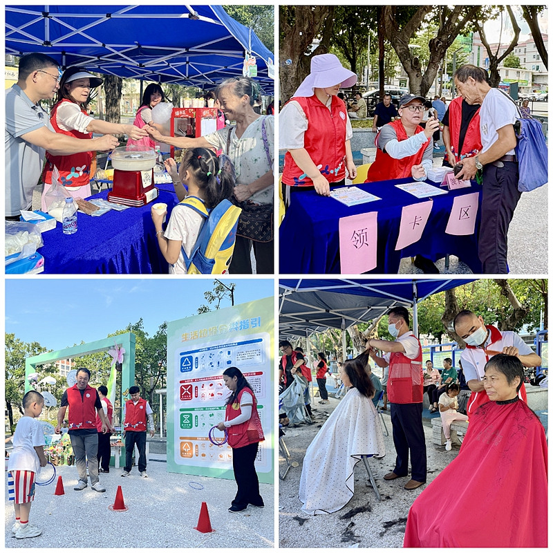 这场热闹非凡的“绿色盛宴”,是坪地社区党委坚持“党建引领、服务为民”的生动实践。自活动筹备之初,社区党委便将“低碳环保”与“民生服务”深度融合,牵头联动辖区环保企业、公益组织组建“党建+低碳”志愿服务联盟。党员志愿者提前3天进场布设、规划动线;活动当天,身着红马甲的党员活跃在各个服务点位,引导老人参与免费理发、蹲在垃圾分类游戏区教孩子辨识标识、手持低碳手册讲解“随手关电器一年能省多少度电”,真正把党组织的组织力转化为服务群众的“绿色动能”。