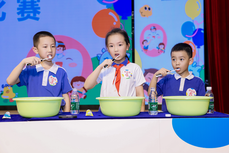 “原来我左边牙齿刷得不够到位!”“我刷了3分12秒,超时了!”孩子们在操作中不断调整,力求规范。评委团则从刷牙方法、操作完整性、节奏控制等维度进行综合评分,确保比赛兼具科学性与教育性。