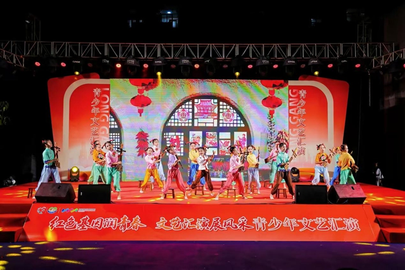 当晚的演出中,青少年红色文工团的孩子们成为舞台焦点。群舞《爷爷的弦》以灵动舞姿勾勒红色记忆,每一个动作都饱含少年朝气;情景朗诵《满江红》激昂顿挫,将民族气节传递给在场每一位观众;歌曲《我和我的祖国》旋律悠扬,唱出对祖国的赤诚热爱。