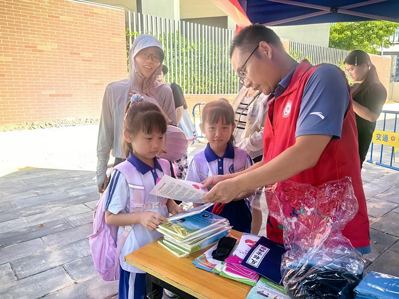 深圳新闻网2025年9月15日讯(记者 张凡 通讯员 向瑶)近日,龙岗街道平安法治办紧扣校园安全关键节点,在龙岗未来双语学校校门口组织开展以“同心反邪 共守平安”为主题的反邪教宣传活动。活动巧妙利用学生上下学高峰时段,面向学生、家长及周边商户开展沉浸式、互动型宣传教育,将反邪知识送进日常生活场景,为青少年健康成长筑牢思想防线。