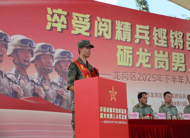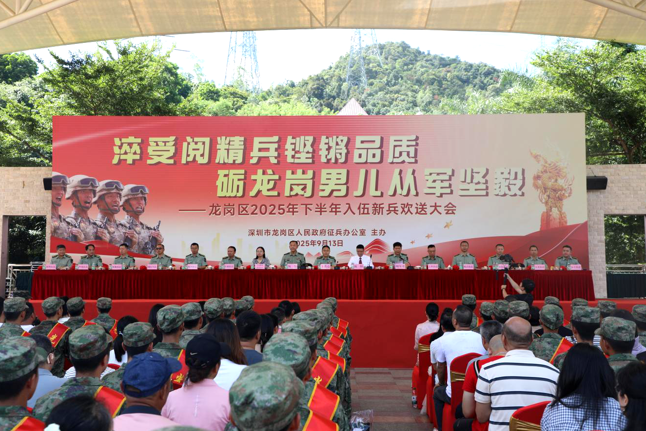 深圳新闻网2025年9月16日讯(记者 吴猛 通讯员 董慧珊)9月13日,龙岗区召开2025年下半年入伍新兵欢送大会,百余名优秀青年怀揣壮志,毅然踏上军旅征途,开启报效祖国的新篇章。龙岗区人武部主要领导、香港中文大学(深圳)相关领导、各街道武装部、相关院校武装部领导出席会议;应征入伍青年及其家长、人武部相关工作人员参加会议。