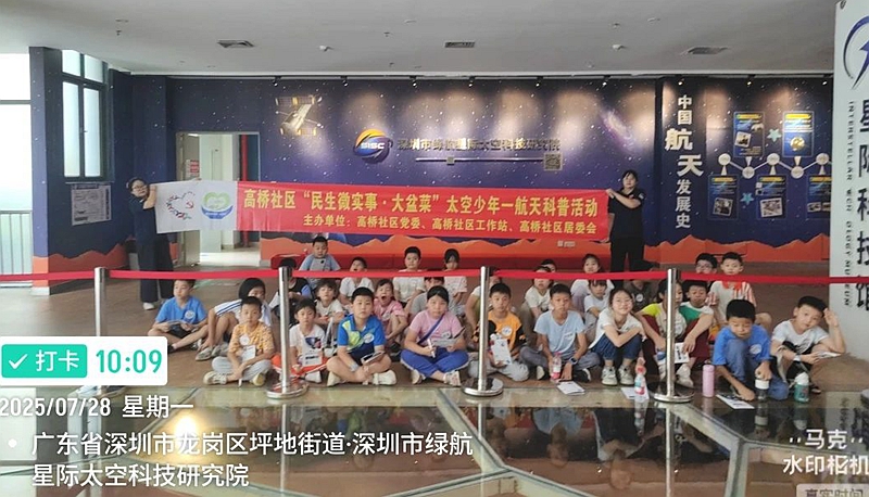 深圳新闻网2025年9月18日讯(记者 张凡 )近期,由深圳市龙岗区高桥社区主办、深圳市绿航星际太空科技研究院承办的“民生微实事・大盆菜”项目——“太空少年・筑梦航天”航天研学活动分三期顺利完成,覆盖7月16日至17日、7月28日至29日以及8月7日至8日,累计吸引近百名社区青少年参与。