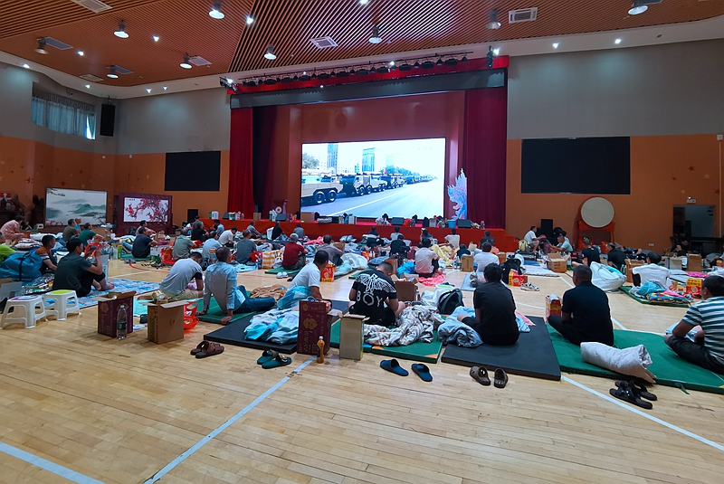 不止于“精神共鸣”,更有“身心共暖”。回龙埔社区组织工友开展趣味运动会,“不倒森林”“滚铁环”等童年游戏让笑声回荡在安置点;兰著学校安置点内,一场工友篮球友谊赛火热开打,汗水与呐喊驱散了风雨带来的压抑;黄阁坑社区大运中心点,几位老师傅围坐一桌对弈象棋,神情专注,仿佛置身市井茶馆。