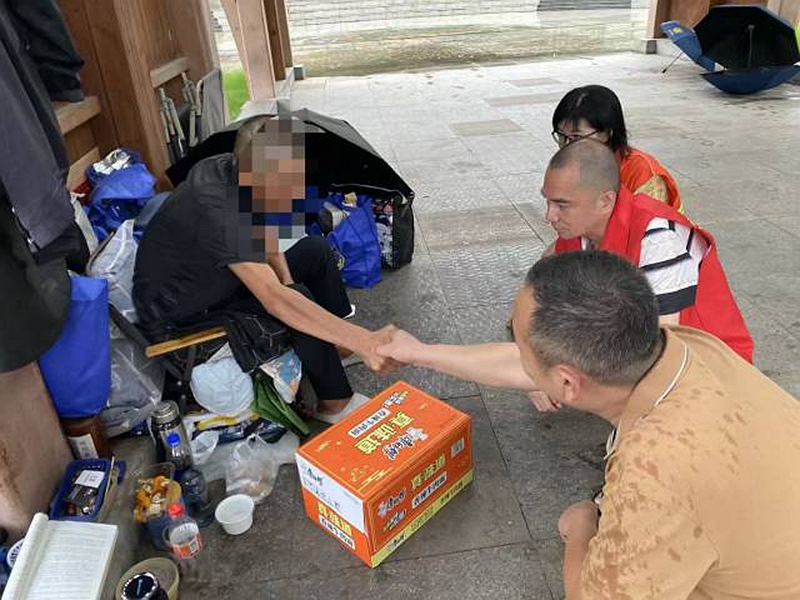 在圣山公园凉亭,巡查组找到因失业滞留多日的尤某。告知台风风险后,尤某同意入站避险。除提供基本生活保障外,工作人员还为其安排心理疏导,并协助其顺利返乡。