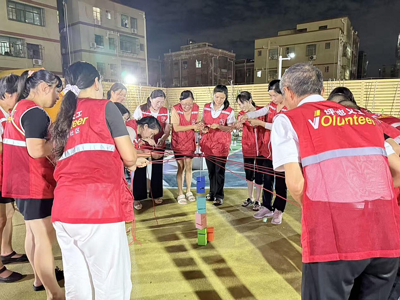 活动还特别设置“同心筑塔”团建环节,志愿者们通过拉绳控制塔钩,协作将“塔砖”搬运并搭建成型。大家默契配合、齐心协力,最终成功完成挑战,现场掌声与欢呼声此起彼伏。“希望社区多组织这样的活动,让我们认识更多志同道合的伙伴,吸引更多居民加入志愿服务大家庭!”志愿者李女士动情地说道。