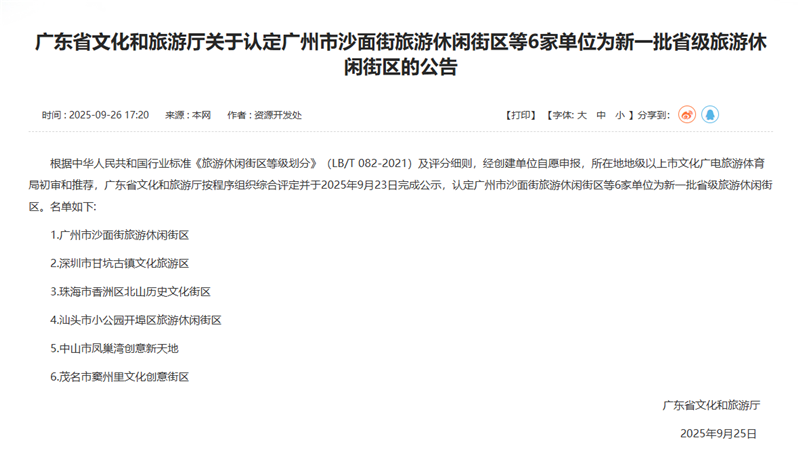 深圳新闻网2025年9月28日讯(记者 李云云 通讯员 张静雅)9月25日,经广东省文化和旅游厅官方公告,深圳市甘坑古镇文化旅游区正式获评新一批“省级旅游休闲街区”称号,成为本次认定名单中深圳地区的代表项目。此次获评,不仅是对甘坑古镇多年来深耕文旅融合、传承客家文化的充分肯定,也进一步彰显其作为都市中珍贵“活态”客家文化遗存的综合实力与品牌影响力。