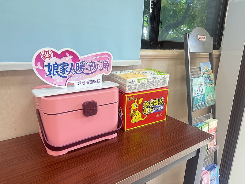 据悉,坪地街道妇联充分整合现有资源,依托各社区妇女阵地、暖“蜂”驿站、党群服务中心等高频活动场所,精心增设9 个“娘家人暖心角”,实现“三新”妇女服务阵地的精准覆盖。每个暖心角虽面积不大,却“五脏俱全”:粉色调的布置温馨如家,柜台上整齐摆放着女性急救箱(内含布洛芬、止血贴、碘伏等常用药品)、卫生清洁用品(独立包装湿巾、护手霜),以及适配季节需求的消暑凉茶包等物资。这些物资均针对女骑手、女快递员、女司机等群体的工作特点配置,无论是烈日下的短暂休憩,还是突发不适时的应急需求,都能让她们第一时间感受到“娘家人”的关怀。