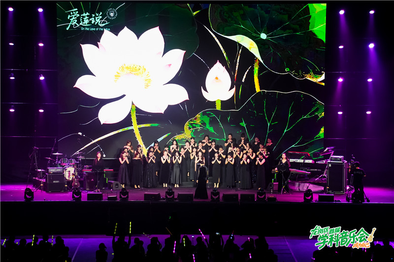 除了乐团演出,丰丽学校学生表演的《出塞》、宝龙科技城实验学校演绎的《马马嘟嘟骑》、香港中文大学(深圳)附属道远学校的《上春山》等节目,也展现了龙岗学子多才多艺、自信昂扬的风采。龙岗区“纯美”女教师合唱团压轴献唱《爱莲说》,用歌声传递古诗词的典雅意境,赢得掌声如潮。