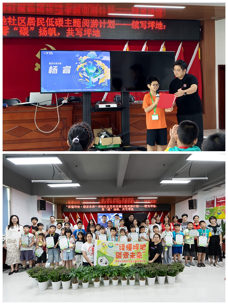 结营仪式上,丰富的环节让现场氛围持续升温。紧张激烈的低碳知识竞答,检验了居民的学习成果;庄重的证书颁发仪式,不仅是对参与者的肯定,更标志着坪地社区“低碳先锋”队伍初步成形。学生代表杨睿以童真的话语分享感悟:“参观能源生态园就像走进魔法城堡,原来废纸盒、矿泉水瓶都是沉睡的‘宝贝’。” 他倡议小伙伴们争做“垃圾魔法师”“绿色出行家”,成为名副其实的“坪地低碳小卫士”。
