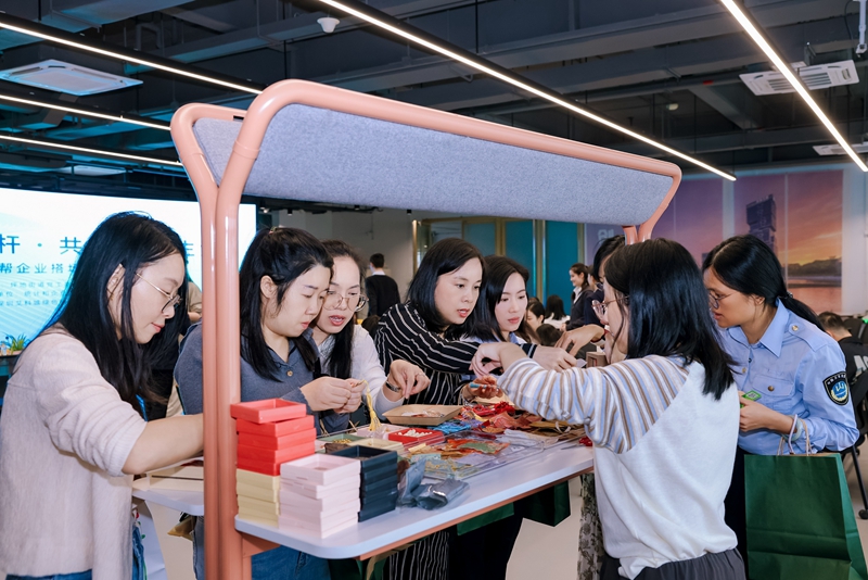 为让绿色发展理念真正融入生活、赋能产业,企服中心联合未来大厦匠心打造了六大特色体验项目,实现了非遗文化、环保创意、健康养生与科技创新的跨界融合。在“丝巾植物染”手工坊,代表们巧用天然染料与园区鲜叶,将坪地非遗技艺与自然之美织入方寸丝巾;“花叶新生”环保艺术DIY、“活态传承”金石拓印、“方寸纳福”宋锦挂饰等项目,以传统工艺为载体,生动传递“低碳即生活”的核心理念;“青囊问道”养生坊邀请中医传承人现场坐诊,让代表们在绿意盎然的环境中实现身心同调;“3D造物社”展示的生物降解材料3D打印产品,更为企业探索绿色产品研发打开了新思路。丰富多元的体验活动,让“绿色发展”既有产业高度,更具生活温度。