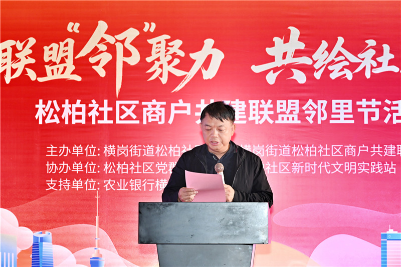 随后,横岗街道四级调研员罗利雄致辞时,对本次活动的举办给予了高度肯定。他指出,商户是社区最活跃的“细胞”,是推动基层社会治理创新的重要力量,希望联盟能继续秉持“共治共建共享”理念,以“邻”为桥、以“共”为帆,携手把社区“活力圈”绘制成更安全、更和谐、更繁荣的“幸福圈”。