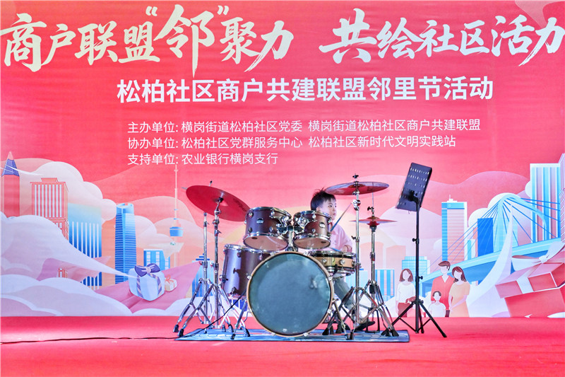 一阵铿锵有力、节奏明快的架子鼓表演瞬间点燃了现场气氛,也为本次邻里节活动拉开了精彩的序幕。来自社区的学生们上台表演,用青春的激情与娴熟的技艺,赢得了满堂喝彩,展现了松柏社区新生代的蓬勃朝气。