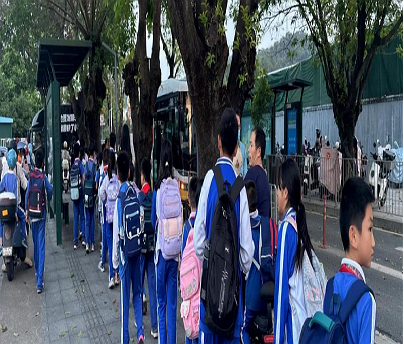 随着同兴学校招生规模持续扩大,途经学校的唯一一条公交线路已难以承载学生早晚出行需求。每日17点放学时段,学校周边公交站台便被学生挤得水泄不通,部分学生为赶车不得不跑到下一站候车,低年级学生因错过末班车,更是需要家长请假专程接送。这不仅加重了家庭负担,也让校园周边交通疏导压力陡增,成为家长们最揪心的“急难愁盼”。