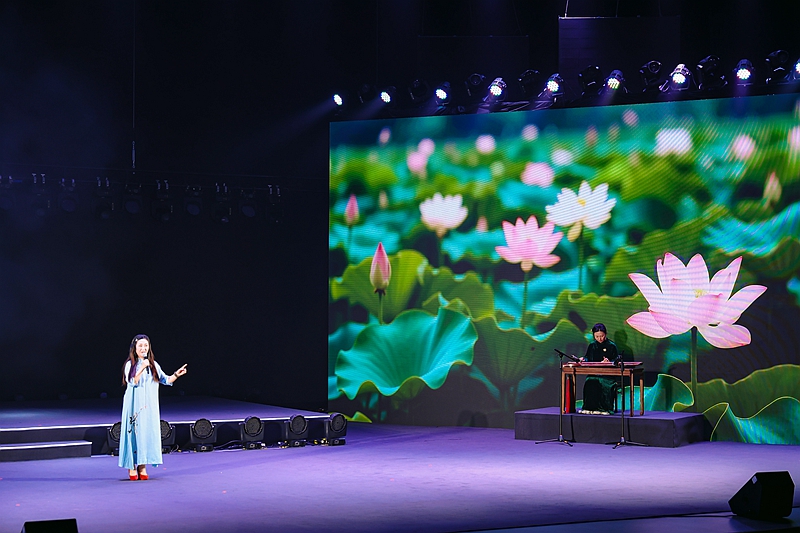 第一篇章“古韵回响”聚焦中华经典诗文,让千年文脉在耳畔流淌。深圳市朗诵艺术家协会理事龙小妹携手古琴演奏家李予琳,以《爱莲说》勾勒出“出淤泥而不染”的君子风骨,古琴的悠扬与朗诵的深情相得益彰;龙岗区朗诵协会会长张磊演绎的《将进酒》,将李白“天生我材必有用,千金散尽还复来”的自信与旷达展现得淋漓尽致;深高园学子带来的《行香子・天与秋光》,细腻诠释了李清照词中的秋日愁绪与温润诗心;范家宁朗诵的《满江红》则慷慨激昂,尽显岳飞英雄气概,让现场观众深切感受中华传统文化的精神内核。
