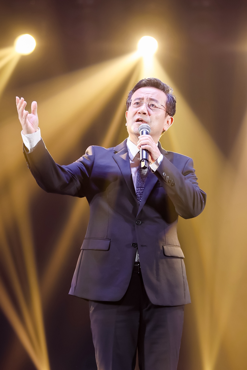 第二篇章“家国情怀”从“小我”走向“大我”,传递深沉的家国大爱。乐淮实验学校管乐团奏响《唱支山歌给党听》,悠扬的管弦乐旋律道出赤子对党的深情告白;姜贺、刘晶、李丹三位主持人朗诵的《采蒲台的苇》,通过芦苇的意象再现了革命岁月中的不屈精神;国家一级演员王英演绎的《不朽》,深情致敬为民族解放献身的先驱英烈;杨文带来的《我爱这土地》,用艾青的诗句传递对家国故土的刻骨依恋;深高园朗诵团的《何以华夏 何以中国》,以恢宏的追问探寻中华文明的精神密码,引发全场共鸣。