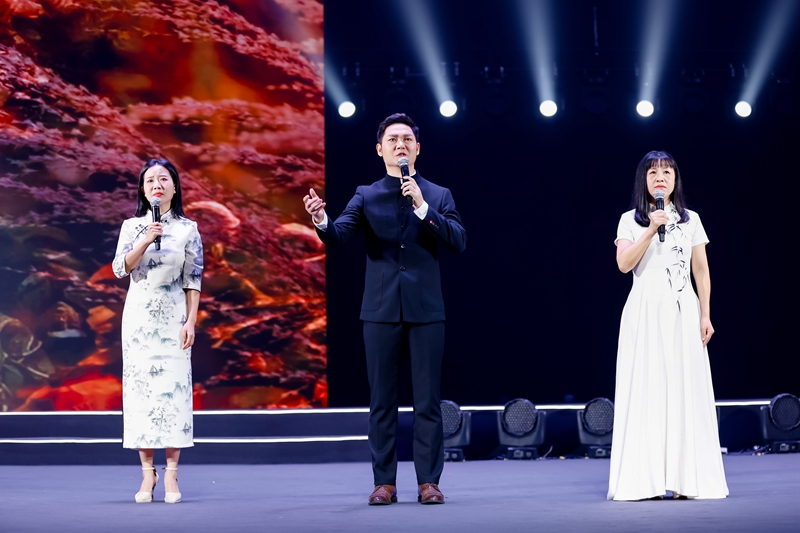 第三篇章“绿美新声”紧扣时代脉搏,奏响绿色发展与城市温情的乐章。深圳市演艺协会的舞蹈《绿动未来之舞》,以灵动的肢体语言诠释绿色发展的蓬勃生机;深圳广电集团主持人项飞朗诵的《与你同行》,源自坪地本土作家邬耀仿的创作,这位扎根坪地二十余年的务工者作家,用文字记录城市记忆,传递对这片土地的深情;坪地中心小学刘静雅带来的《播撒绿色种子,守护共同家园》,以孩童的视角诠释对地球家园的守护责任;深圳市朗诵艺术家协会创会会长吴庆捷的《天下风光在读书》,彰显阅读赋予发现美、创造美的力量。