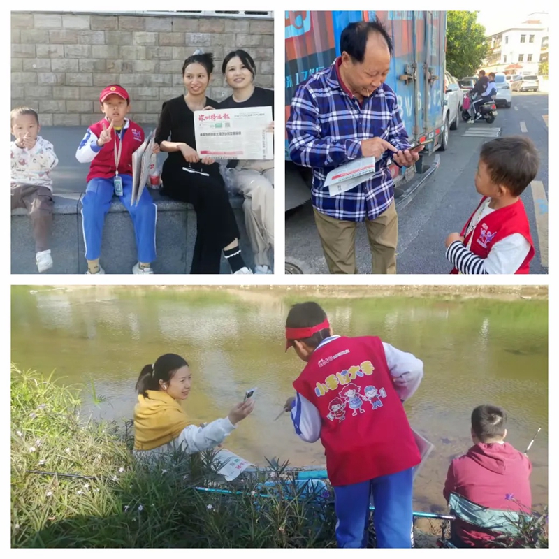 清晨的阳光下,40余名孩子身穿定制马甲,手捧《深圳特区报》,在社区工作人员的指导下开启“岗前培训”。随后,他们化身“小小报童”,走进社区公园与街头,向行人发出稚嫩却坚定的邀请:“叔叔阿姨,我们在公益卖报,您要不要买一份?”