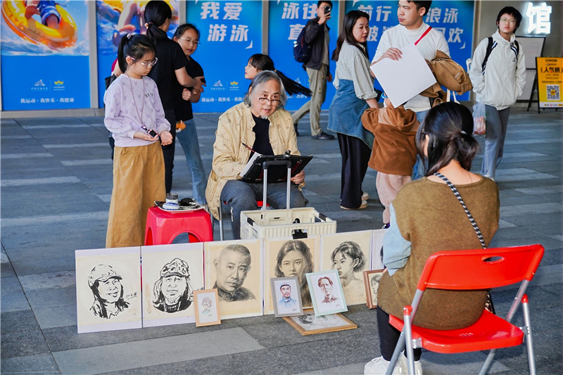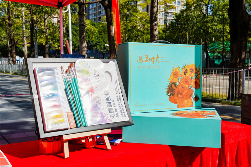 文创展位上,色彩斑斓的大芬油画衍生品吸引了市民驻足观赏。本土街头艺术家还手持画笔,现场手绘“圳的英雄”, 以画笔定格球员拼搏瞬间,以艺术化表达传递了对奋斗者、拼搏者的敬意,呼应了深圳“敢闯敢试、开放包容”的城市气质。“线条灵动、色彩鲜明,让我们在观看比赛的同时还领略到了油画艺术的非凡魅力。”现场观众称赞道。