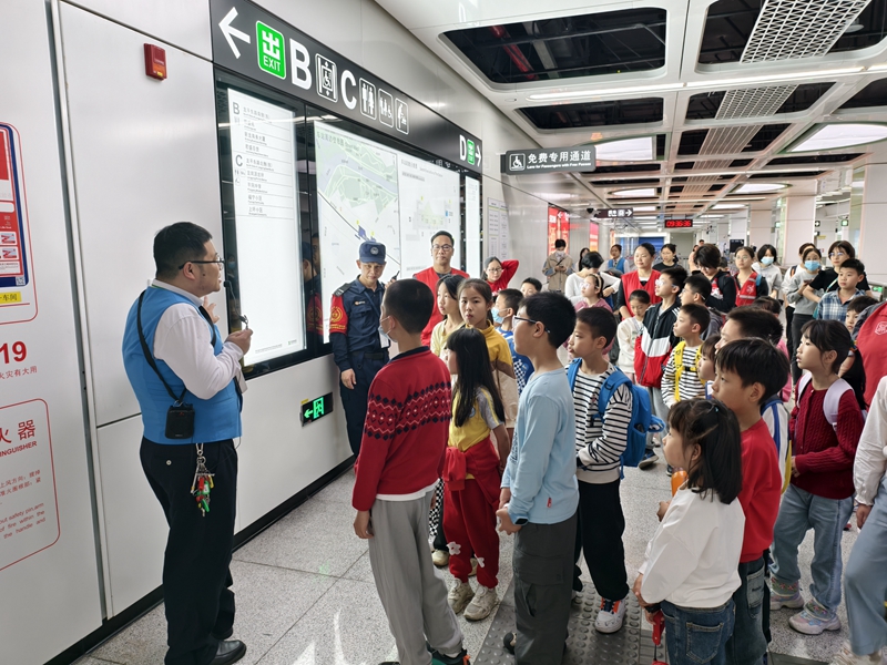“乘坐扶梯的时候一定要站稳扶好,不能奔跑打闹。”一位青少年在观看地铁扶梯警示片后认真地说道。为了进一步增强青少年的安全意识,地铁工作人员向他们详细讲解了站内可能遇到的突发情况,并现场展示了应急防爆演练、应急逃生演练以及消防器械的使用方法等,让青少年们全面了解了地铁站应急设备的操作须知和操作步骤。