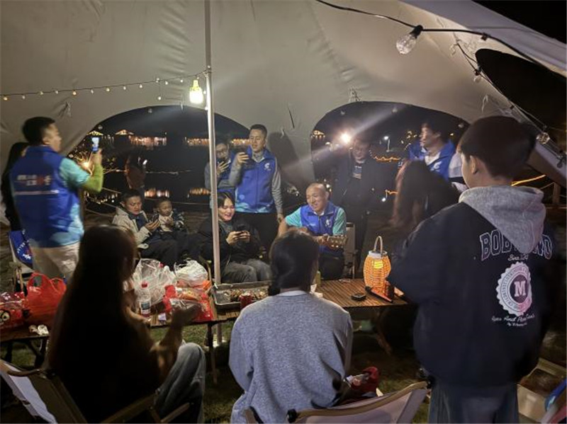 夜晚的篝火晚会成为才艺绽放的舞台。动感舞姿、深情朗诵、吉他弹唱、动情高歌、诗篇分享……一个个有温度的节目让夜晚变得格外温暖。在熊熊燃烧的篝火旁,会员们围坐烧烤、齐唱老歌、跳篝火舞蹈,一张张笑脸在星空下筑起温暖的心灵港湾。