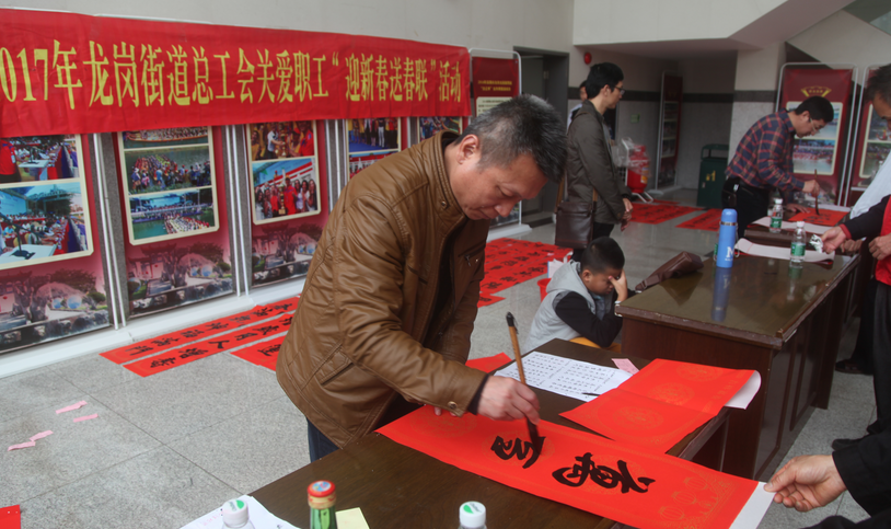 深圳新闻网龙岗讯(通讯员 陈斌)“金鸡报晓千门喜,美德传家万世春……”一幅幅春联在书法家的笔下挥出,蕴含着浓浓的年味,更传递着满满的祝福。1月18日,龙岗街道迎新春送春联的活动受到了干部职工的的欢迎,5位书法家的每条队伍都排上了长龙,在短短的1个多小时里,书写了150多幅的对联,拿到春联的职工个个喜开笑颜。