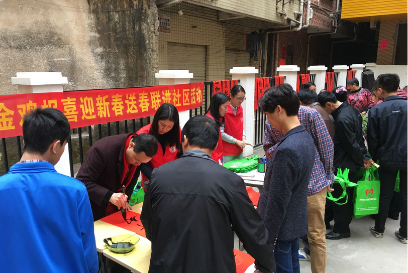 深圳新闻网龙岗讯(通讯员 林玉)红色的春联为严冬添了暖意,也为人们带来了洋洋的喜气,春节写春联、贴春联是我国特有的年俗。新春将至,为弘扬传统民间文化,感受节日氛围,近日,北斗机构驻岗头社区党群服务中心社工邀请大书法家为居民书写春联,送去新春的祝福。 活动当天,社区居民早早就来到活动现场,排起长队挑选自己喜欢的春联内容等待书写。