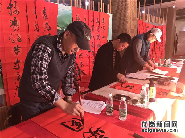 在客家,到年二十八或二十九,家家户户都会贴春联,贴门神,从这天到年初三,各家点灯照明到天亮,俗称“点年光”。今年,为迎接新春,年二十八,甘坑客家小镇邀请了深圳书法家协会董一飞、唐叶兵、范之博等三位老师题写百副春联,部分免费赠予游客,部分张贴在小镇家家户户门前,为古香古色的小镇增添了新年的气氛。状元府、甘醇庄、凤凰谷都抹上了一色红,寄托了新年的祝福。