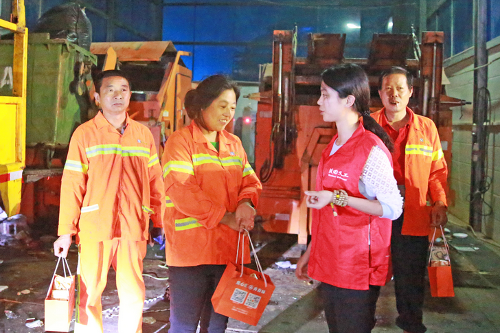 为了筹备此次活动,万科城青春家园的社工们经过多次外出调研,跟相关部门协商,同时提前准备物资和招募义工参与。终于在周日凌晨顺利开展。19位穿着红马甲的义工从万科城青春家园披星戴月的出发,前往岗头社区给“城市的美容师”环卫工赠送早餐和日用品,同时开展爱心替岗活动。