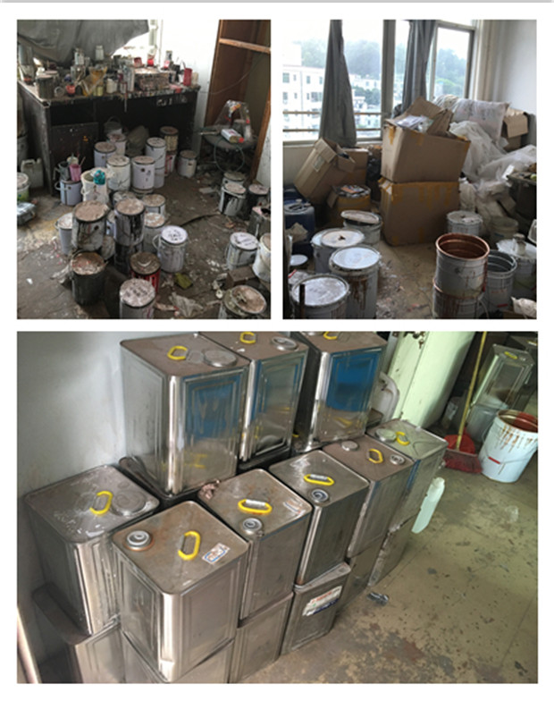 该地下小作坊位于坂田街道坂雪岗大道3006号5楼楼顶,暗藏于居民楼内,从事手机外壳喷漆业务,属无牌无证非法经营。执法人员经现场核查,当事人在不足100平米的屋内共违规存放23桶白电油(11kg/桶),存在极大的消防安全隐患,一旦发生安全事故,后果不堪设想。坂田派出所民警当场将小作坊经营者和一名员工带回进行协助调查,并对经营者段毅兰作出5日依法行政拘留处理。目前,该场所已被依法查封,执法人员对存放的危化品进行了查扣。坂田社区安全员现场对该场所房东进行教育训诫,同时告诫房东不得再将居民区住宅出租用于开办小作坊。