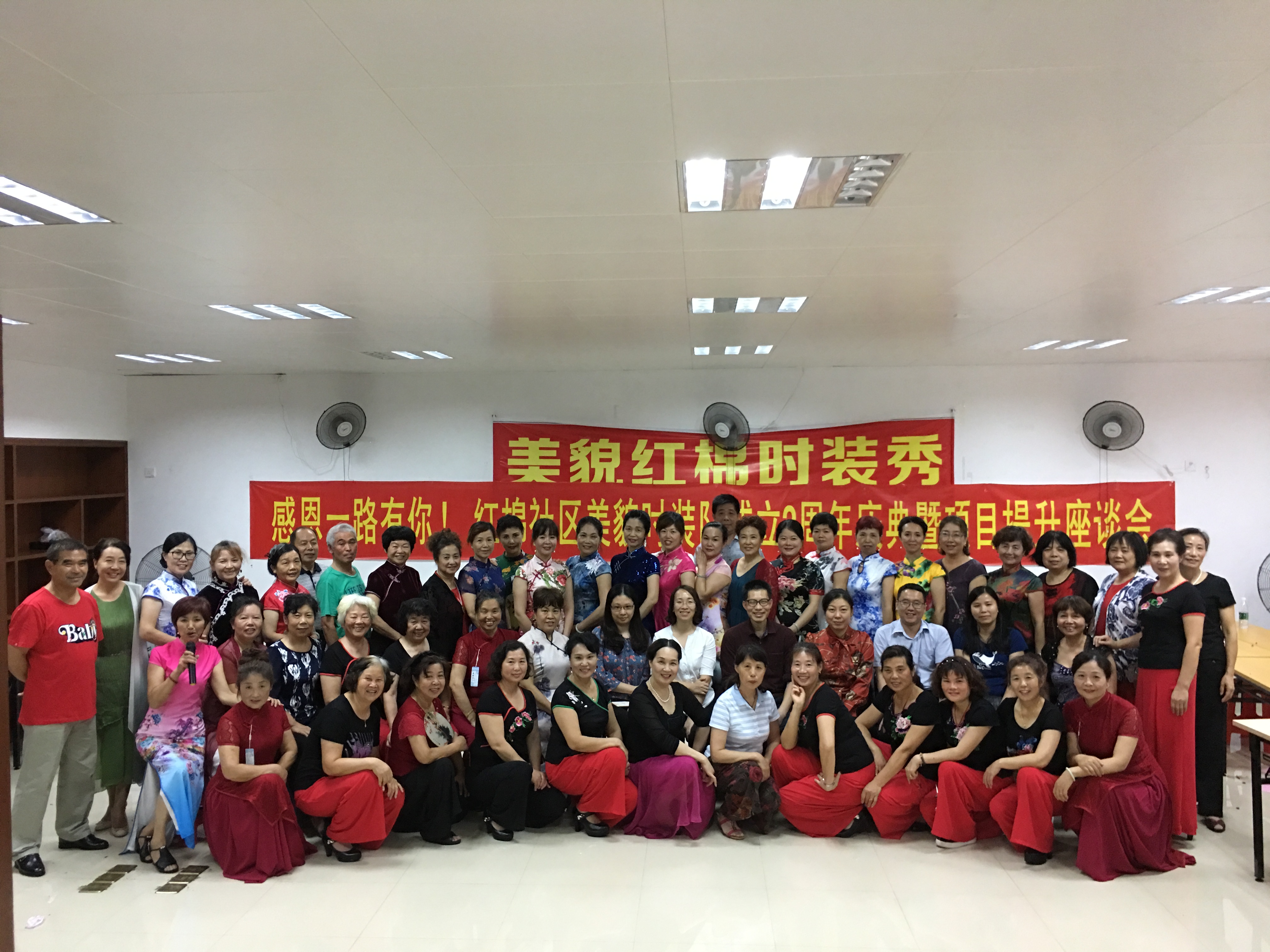 据悉,横岗街道红棉社区美貌时装队提升项目是红棉社区2017年社区民生大盆菜的项目之一,自成立以来就刻苦训练,现有队员70余名,队员基本都是辖区退休老人,其中还有一些男队员。她们旨在弘扬民族旗袍的文化传统,丰富中老年生活,提升中老年气质,展现女性时尚风采的魅力及女性所特有的柔美。