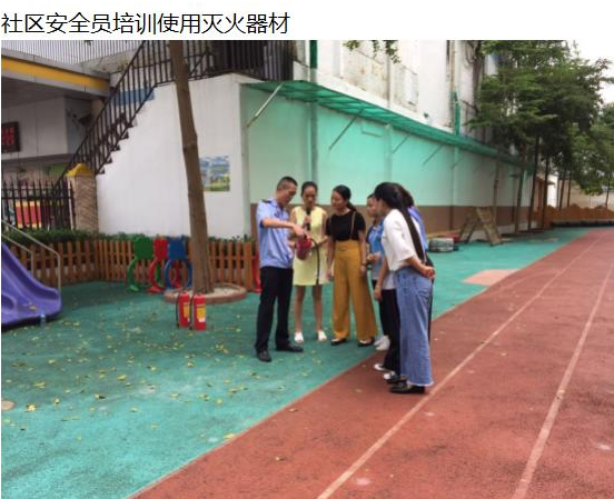 疏散结束后,由社区安全员为老师们详细讲解了灭火器材的使用方法,并现场使用灭火器模拟灭火操作,通过操作,老师们基本都能正确使用灭火器。