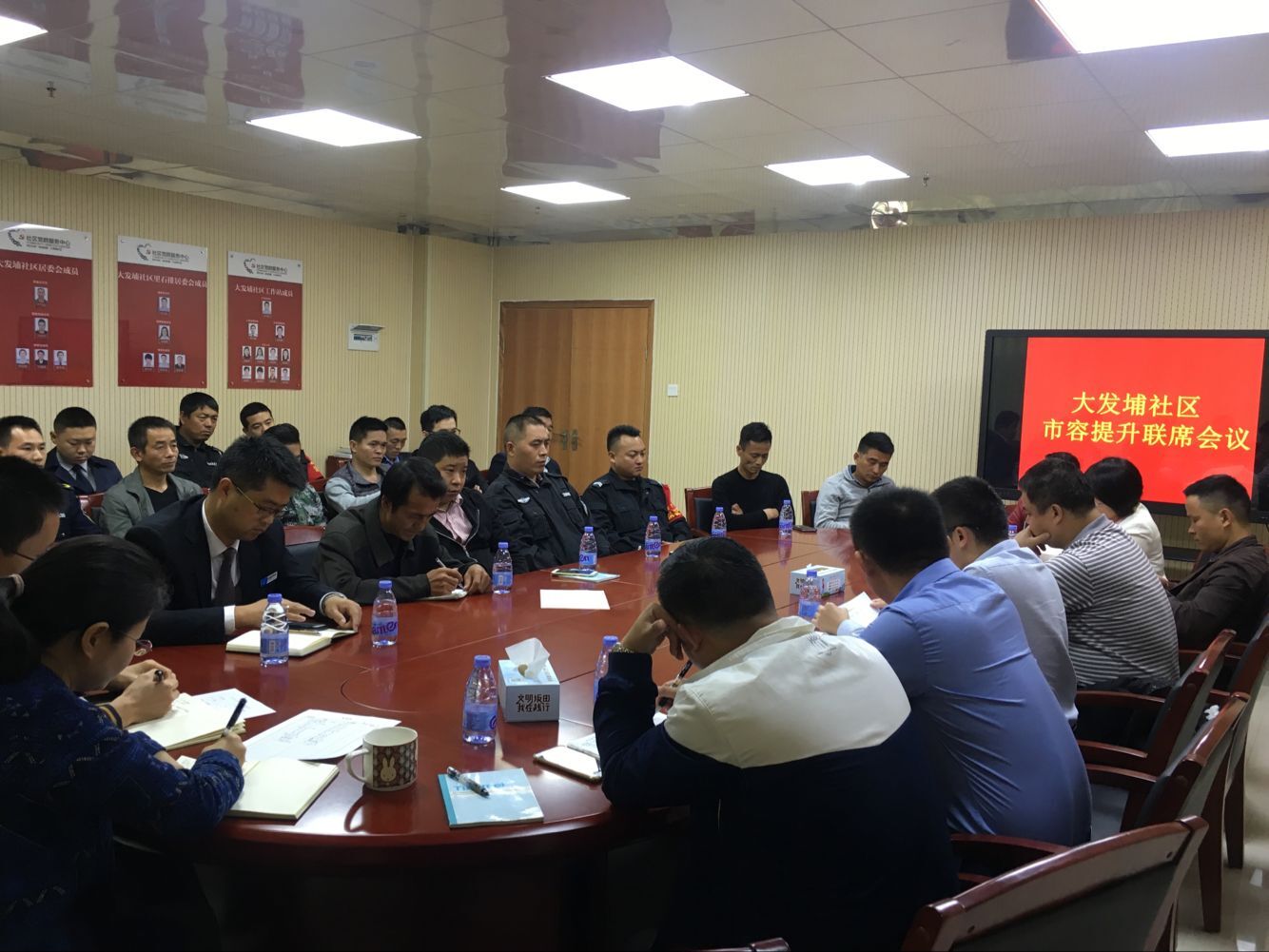 深圳新闻网龙岗讯(通讯员 陈宇游)11月27日,大发埔社区党委书记、工作站站长王义均同志在五楼会议室主持召开市容提升联席会议,街道市政服务中心、社区驻点执法人员、清扫清运公司、物业公司、工业园区管理处、社区城管所全体人员及安全网格组组长参加了会议。