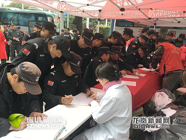 在龙岗区平湖华南城献血现场,深圳市血液中心2辆采血车和20多名工作者参加采血工作,来自深圳市中保诚卫保安服务有限公司、深圳狮子会鹏博精英服务队、深圳市致尚科技有限公司等协办单位的企业家、所属企业员工参加献血活动。