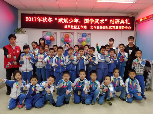 深圳新闻网龙岗讯(通讯员 刘焕辉)光阴似箭,一学期的武术班又结束了。2018年1月18日下午,北斗驻坂田社区党群服务中心在社区提升园举行了2017年秋冬季“斌斌少年,国学武术”班结班典礼,活动共计约30人参与。