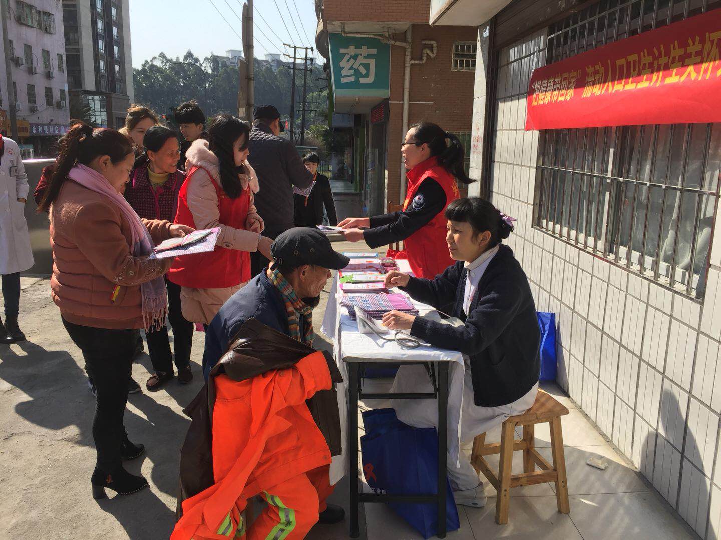 活动现场悬挂横幅,设置咨询台和义诊服务台,工作人员向流动人口和过往群众发放健康66条、流动人口健康教育核心信息等宣传折页,让群众了解更多的健康知识,通过现场问卷回访形式开展问卷调查并发放健康包。社区健康服务中心的工作人员耐心的为群众量血压,讲解慢性疾病的日常注意事项,回答群众的健康疑问等。此次关爱行动达到了预期目标。