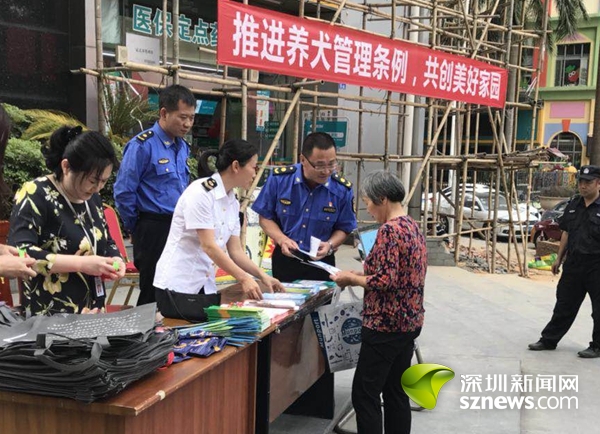 4月11日下午,布吉街道执法队联合城管办、罗岗派出所、卫生防疫站、文景社区工作站举办“文明养犬进社区”活动。