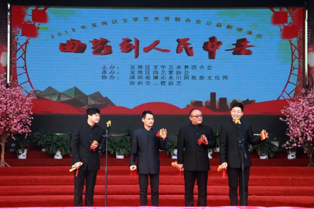 由深圳龙岗区文联主办、龙岗区曲艺家协会承办、深圳市观澜山水田园旅游文化园及深圳市二楞演艺协办的《曲艺到人民中去》公益演出隆重进行。