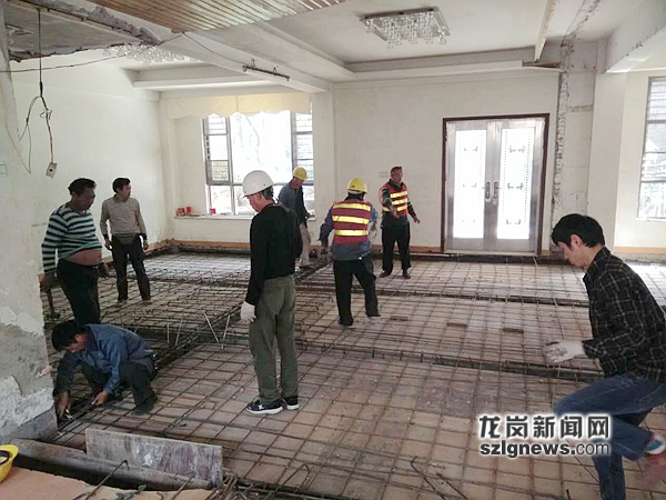 横岗街道规划土地监察队对红棉社区梧桐花园三区31栋的钢筋楼板开展强拆