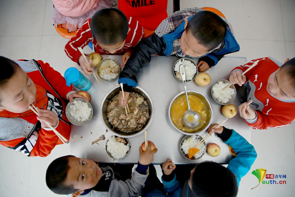 为了让孩子得到均衡的营养。每周都要为孩子们安排发放五次水果。中国青年网记者 孙钊摄