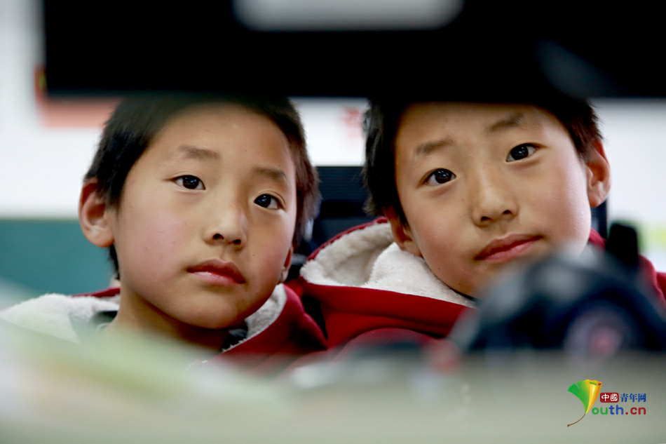 图为一对双胞胎弟兄俩与父母视频,由于父母在外打工,兄弟两人在统部小学寄宿。中国青年网记者 孙钊摄