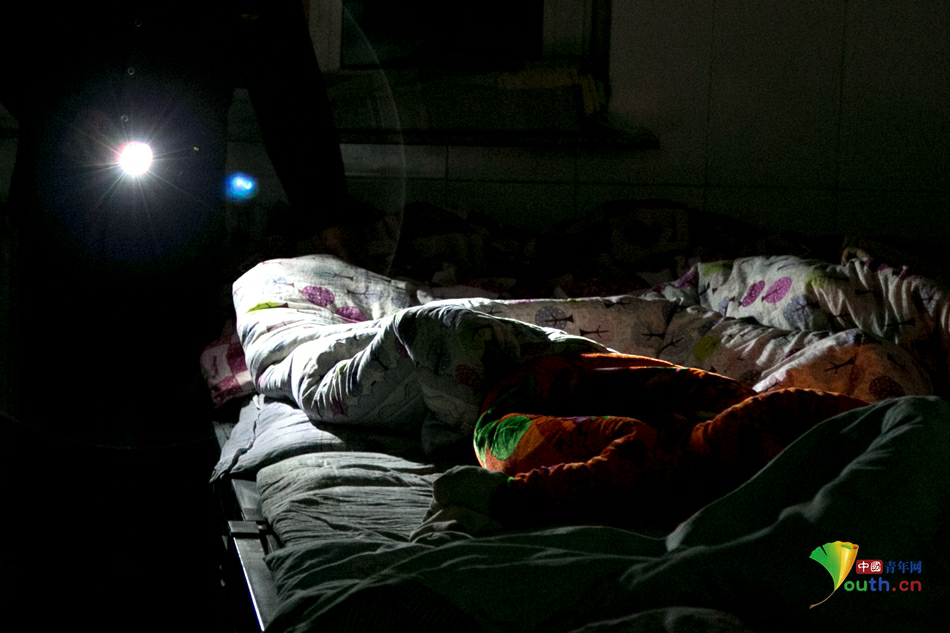 每夜四次宿舍定时巡查,是统部小学的硬性规定。宿舍管理员高凤霞告诉记者,几乎每天晚上都会发现有身体不适的学生,“一般都是头疼脑热之类的,这种都需要及时送医。”长时间与孩子们相处,高凤霞觉得自己更像是孩子们的奶奶,“我已经送走好几届学生了,虽然工作辛苦,但是也觉得很值得。毕了业的孩子们有时候还会在放假期间到我家去串串门唠唠嗑。”图为男生宿舍楼管正在夜巡。中国青年网记者孙钊摄