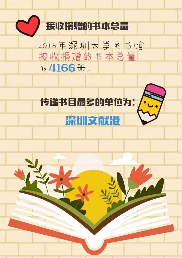 图书馆的发展离不开外界的支持。2016年度,深圳大学图书馆共接收捐赠图书4166册。同时,我们还与其他单位开展书目传递活动。其中与我们传递书目最多的单位是深圳文献港。
