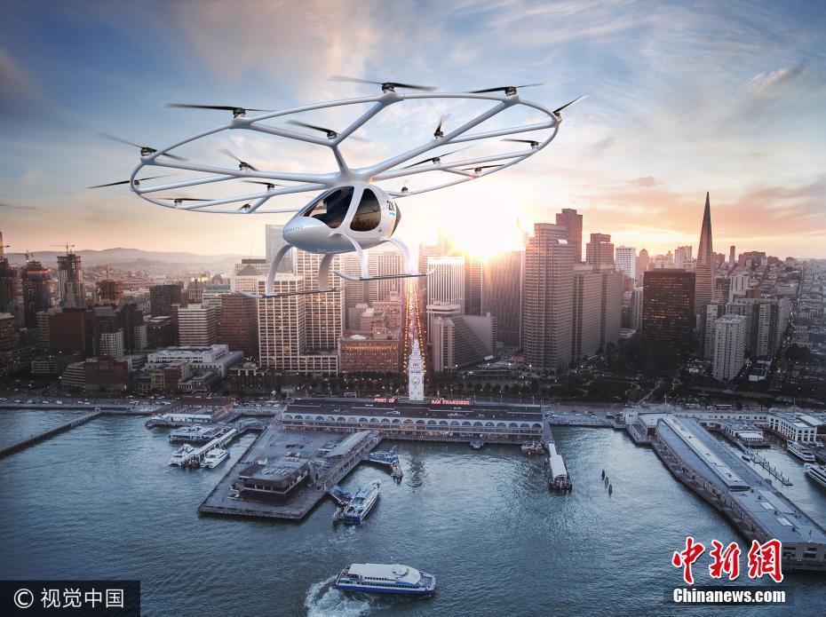 预计在今年年底,Volocopter还将联手迪拜公路运输管理局,在当地展开“自动驾驶空中巴士”的试运营。据悉,Volocopter 2X机型搭载了多达18个静音螺旋桨,能够在提供足够升力的同时,保持低噪音。该机型净重260kg,最大载重160kg。图片来源:视觉中国