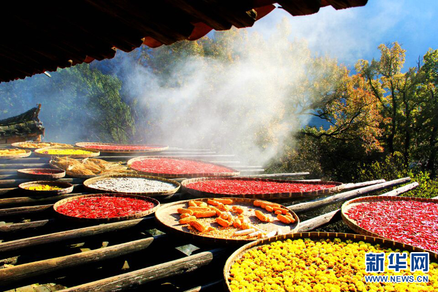 婺源篁岭是著名的“晒秋”文化起源地。数百栋徽派古民居在百米落差的坡面错落有序,每当日出山头,晨曦映照,整个山间村落饱经沧桑的徽式民居土砖外墙与晒架上,圆圆晒匾里五彩缤纷的丰收果实组合,绘就出世界独一无二的“晒秋”景观,成为最美中国符号。篁岭景区董事长吴向阳介绍,婺源篁岭景区自创立之初,就以打造中国最具民俗特色的影视艺术村落为目标,目前在此拍摄取景的影视作品已达十多部。