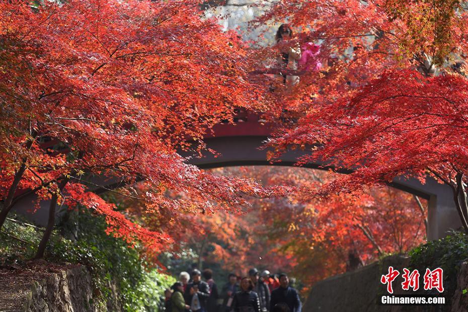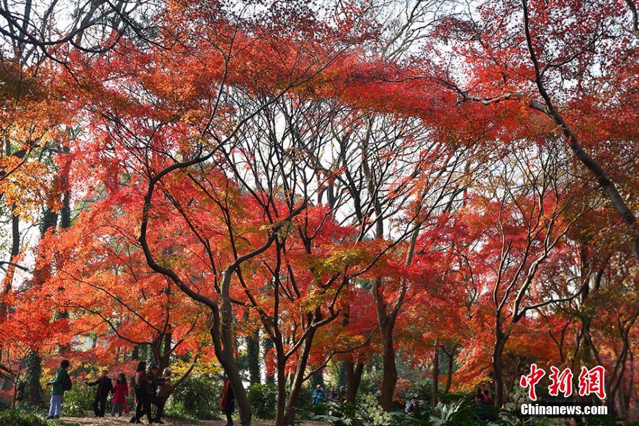 12月3日,南京紫金山中山植物园红枫岗枝叶层叠,独特的韵味吸引了大批市民漫步其中,“沉醉”于五彩斑斓的世界。
